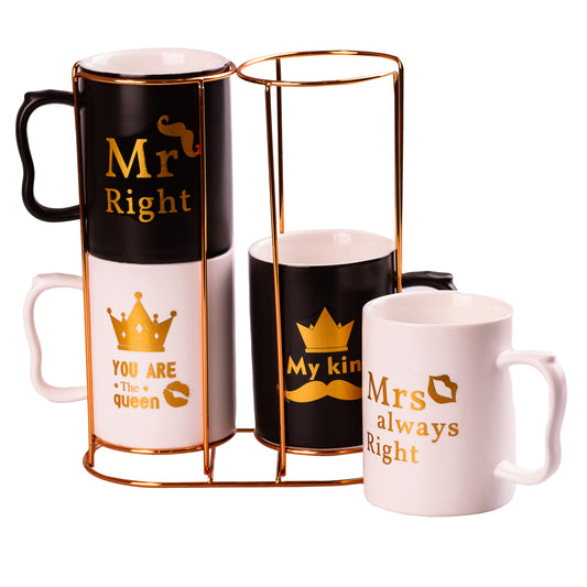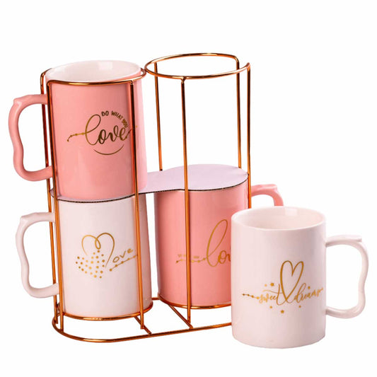 Набір керамічних чашок 400 мл Kingdom of Love на підставці 4 штуки