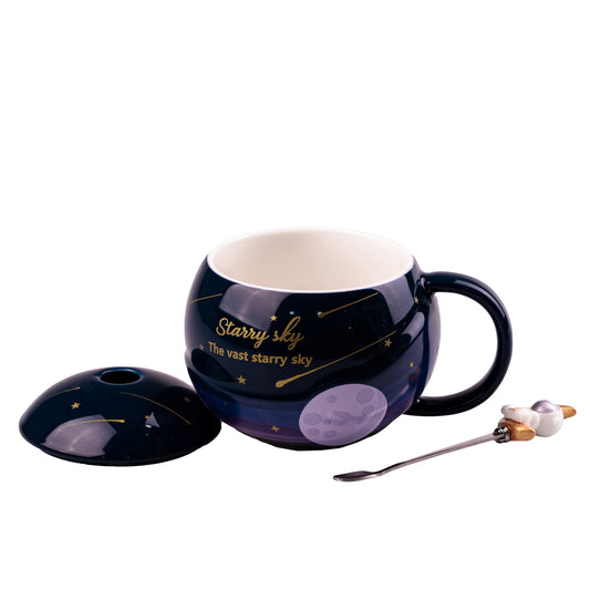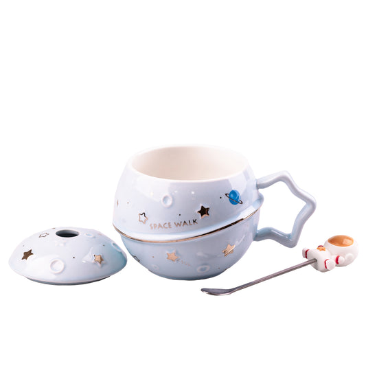 Чашка керамічна 400 мл Астронавт із кришкою та ложкою