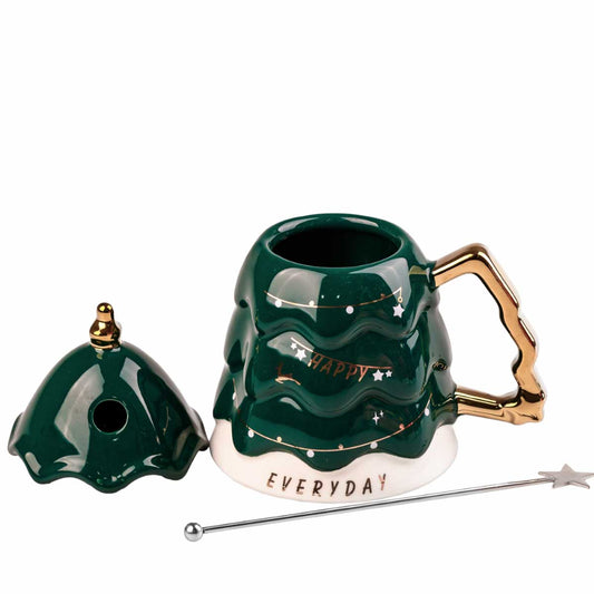 Чашка керамічна 460 мл Christmas tree з кришкою та паличкою для розмішування