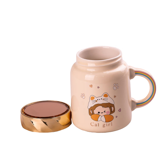 Чашка керамічна 400 мл Rainbow з кришкою і ложкою