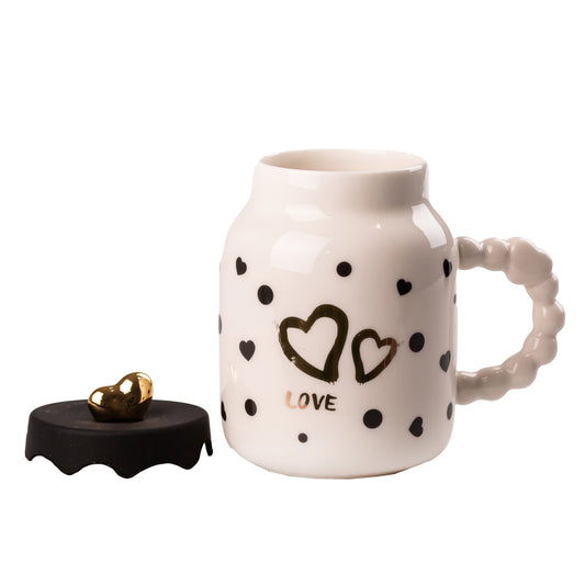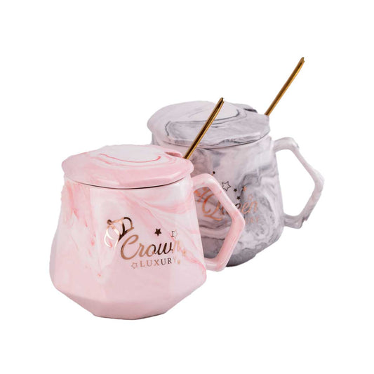 Набір чашок керамічних 450 мл Queen&King з кришкою і ложкою в подарунковій упаковці