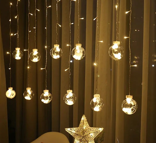 Світлодіодна новорічна гірлянда штора Кульки з пультом 12 предметів