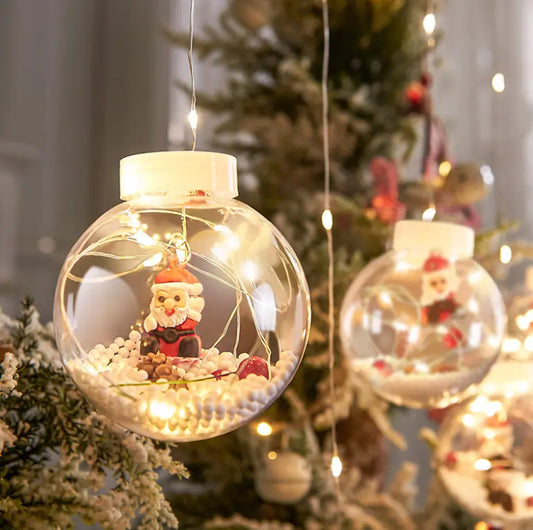 Гірлянда завіса штора Кулі з наповненням Дід Мороз, 3м, 10 куль LED USB