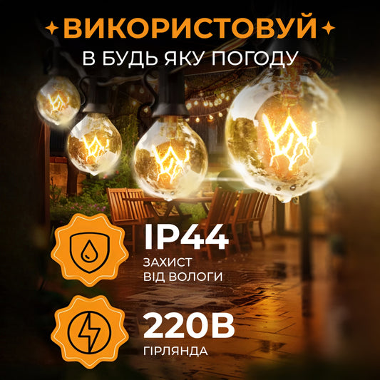 Ретро-гірлянда вулична 10 LED довжина 5 метрів, імітація вогню